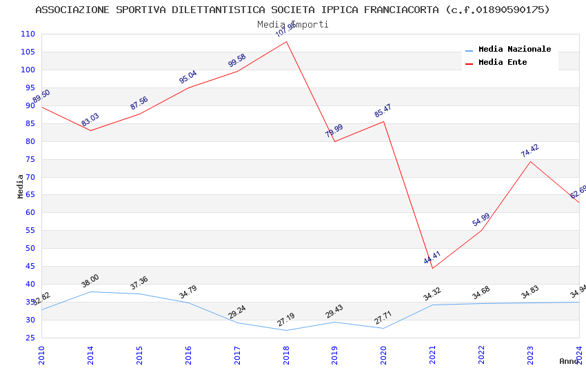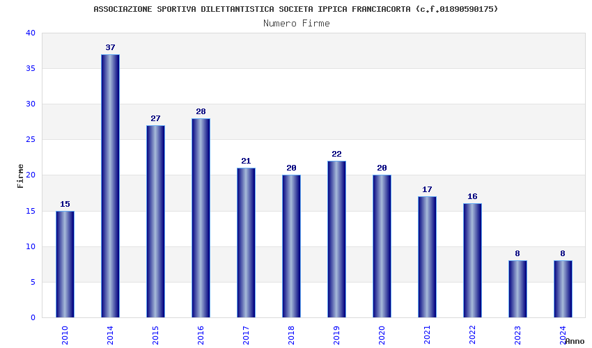 | Anno | Firme | Importi | Media | Naz. | Reg. | Prov. | Comu. |