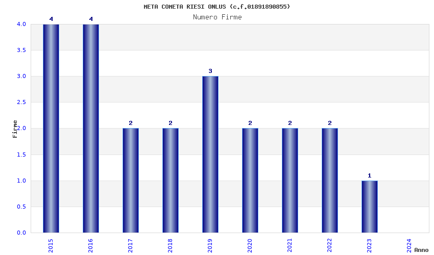 | Anno | Firme | Importi | Media | Naz. | Reg. | Prov. | Comu. |