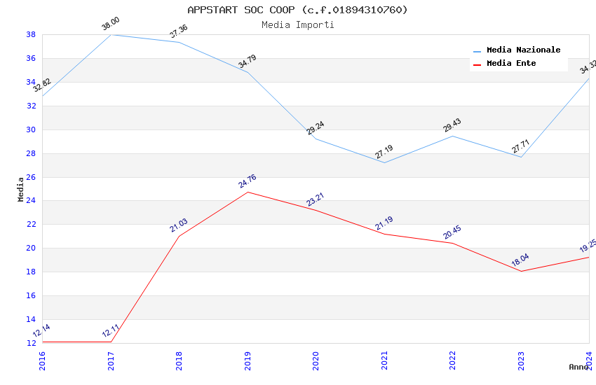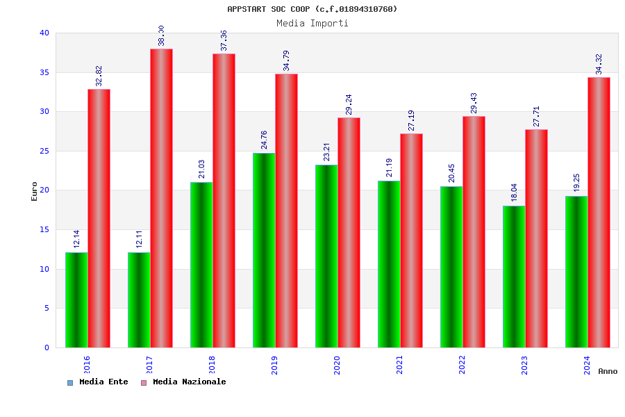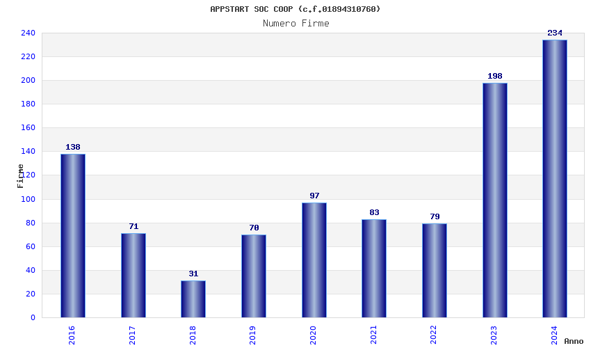 | Anno | Firme | Importi | Media | Naz. | Reg. | Prov. | Comu. |