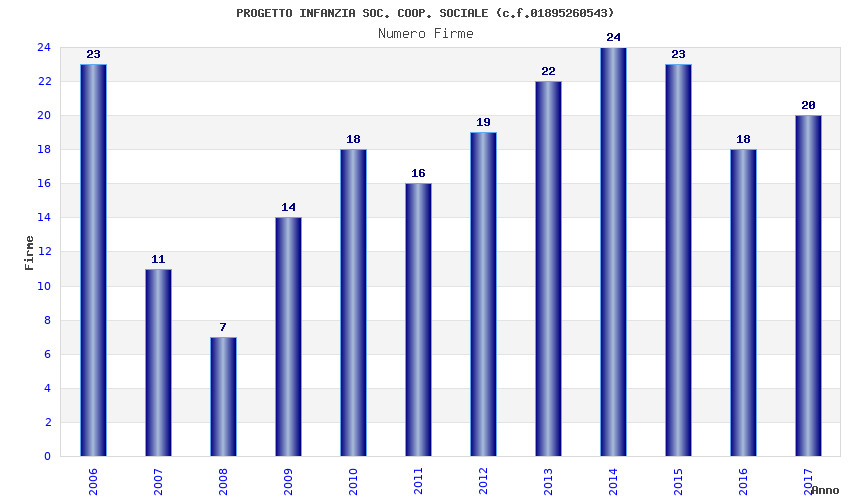 | Anno | Firme | Importi | Media | Naz. | Reg. | Prov. | Comu. |