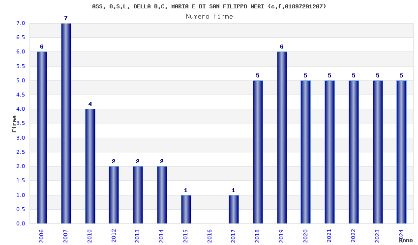 | Anno | Firme | Importi | Media | Naz. | Reg. | Prov. | Comu. |