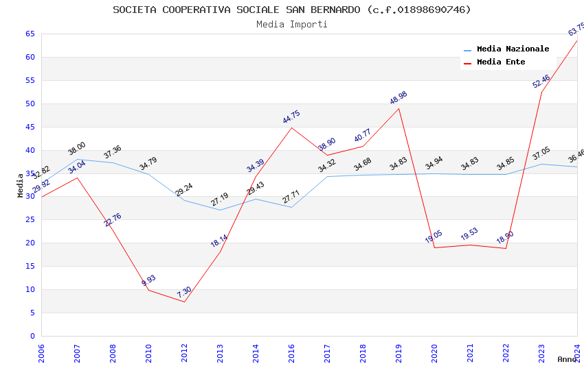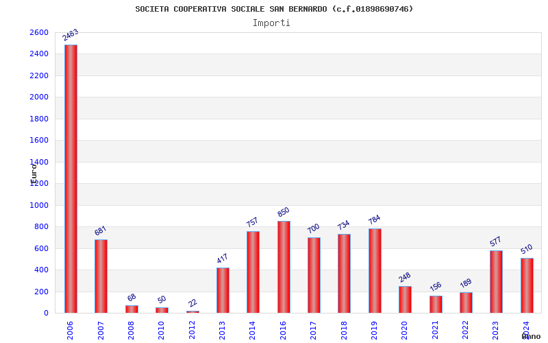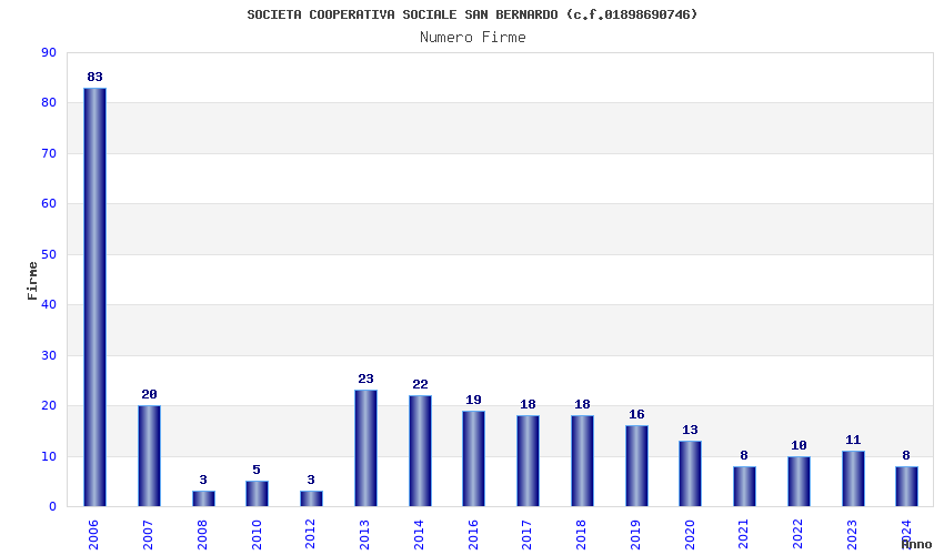 | Anno | Firme | Importi | Media | Naz. | Reg. | Prov. | Comu. |