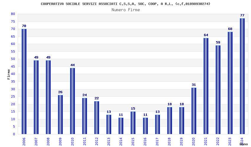| 2024 | 77 | 1.843,84 | 23,95 | 25.547 | 2.369 | 356 | 10 |