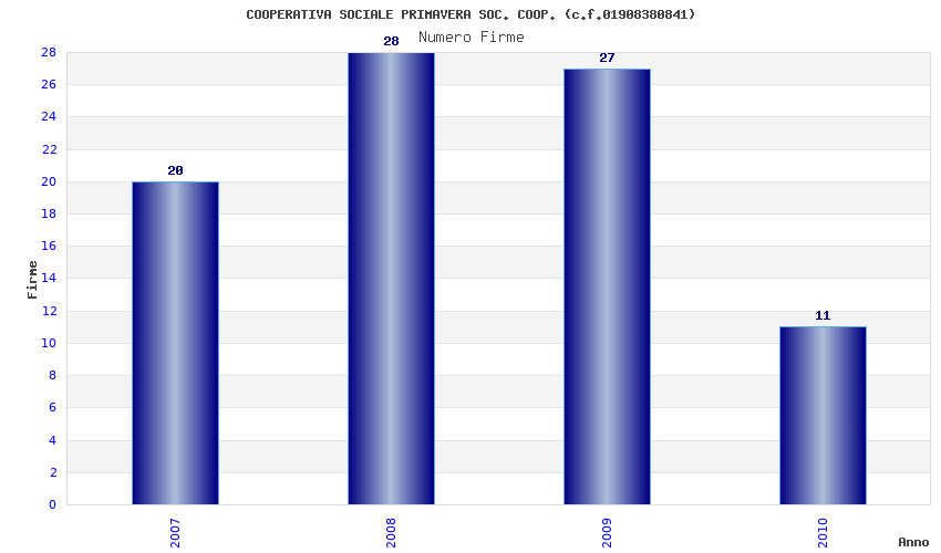 | Anno | Firme | Importi | Media | Naz. | Reg. | Prov. | Comu. |