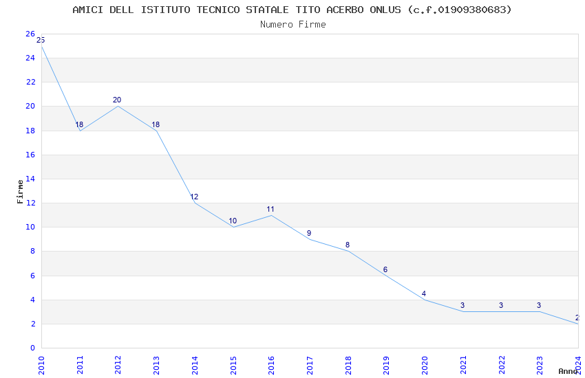 | Anno | Firme | Importi | Media | Naz. | Reg. | Prov. | Comu. |