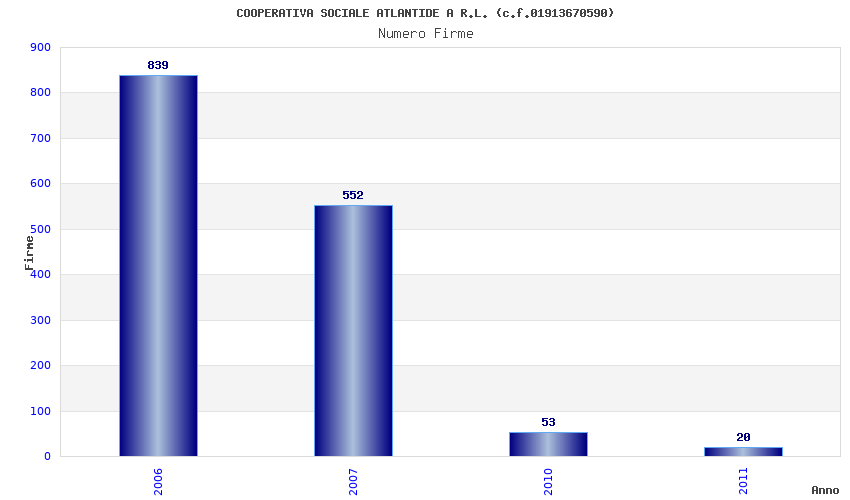 | Anno | Firme | Importi | Media | Naz. | Reg. | Prov. | Comu. |