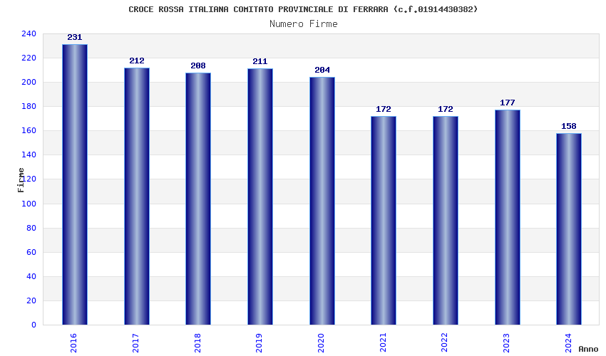 | Anno | Firme | Importi | Media | Naz. | Reg. | Prov. | Comu. |
