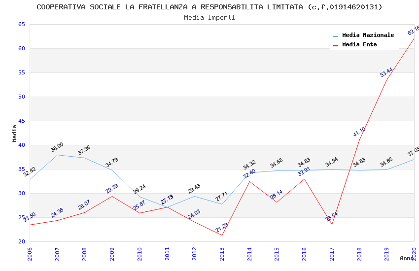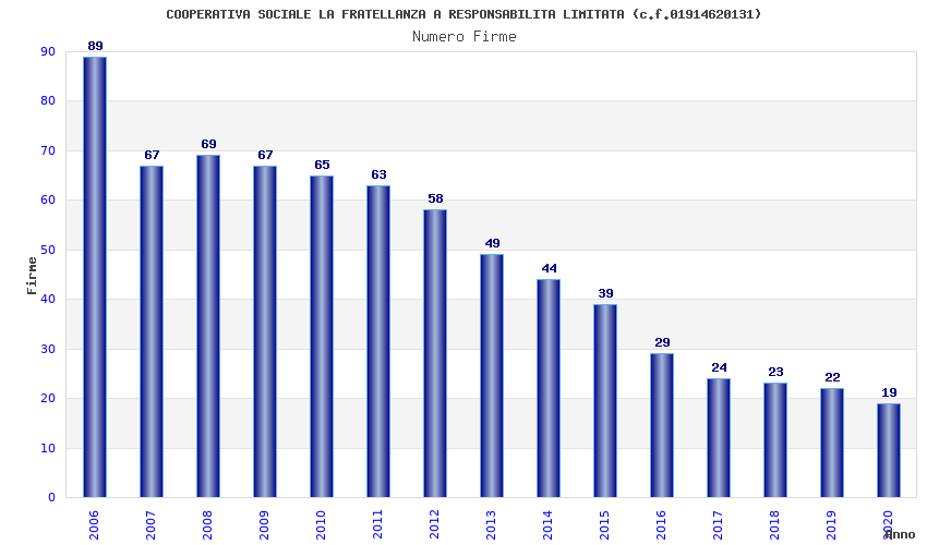| Anno | Firme | Importi | Media | Naz. | Reg. | Prov. | Comu. |