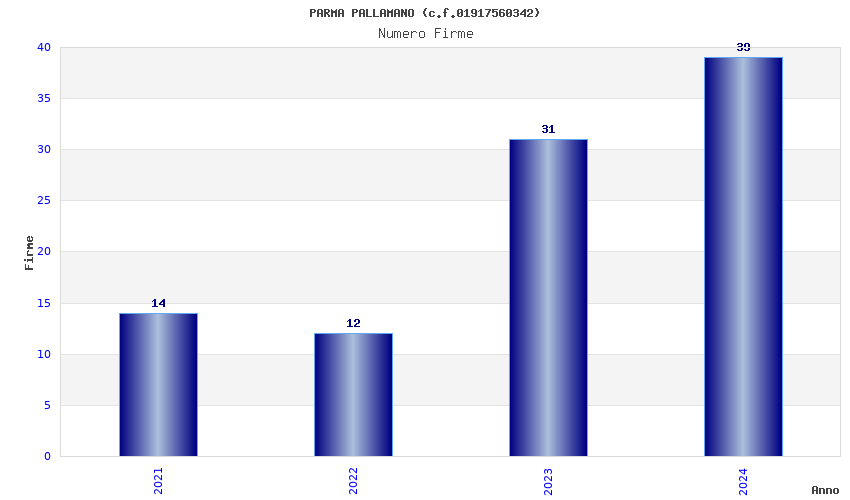 | Anno | Firme | Importi | Media | Naz. | Reg. | Prov. | Comu. |