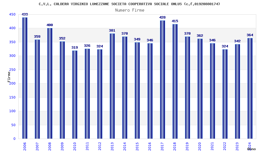 Anno Firme Importi Media Naz. Reg. Prov. Comu.