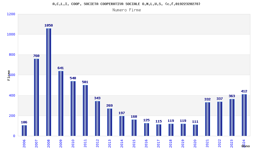 Anno Firme Importi Media Naz. Reg. Prov. Comu.