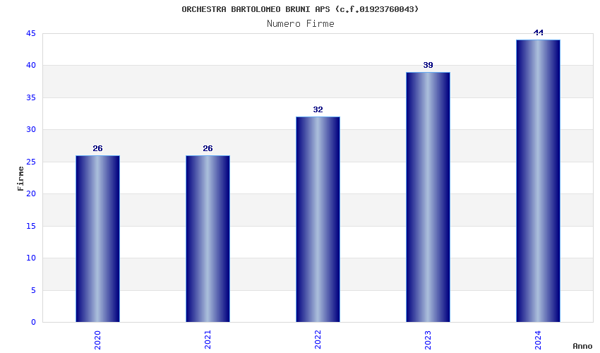 | Anno | Firme | Importi | Media | Naz. | Reg. | Prov. | Comu. |