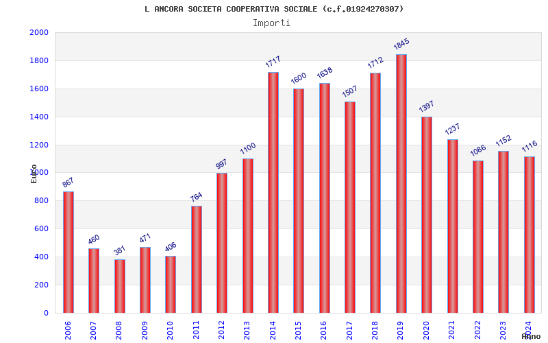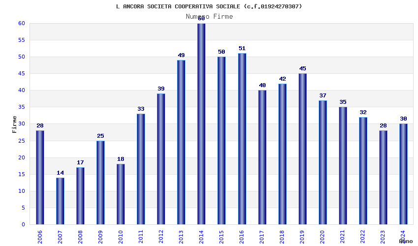 | Anno | Firme | Importi | Media | Naz. | Reg. | Prov. | Comu. |