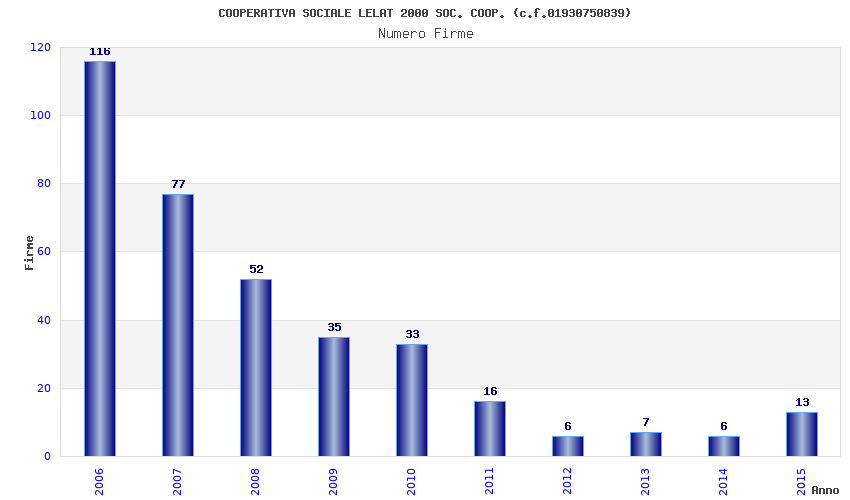 | Anno | Firme | Importi | Media | Naz. | Reg. | Prov. | Comu. |