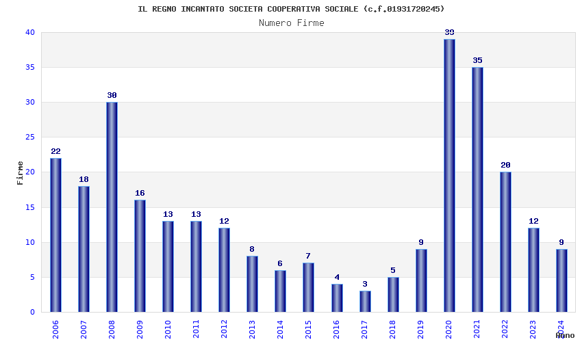 | Anno | Firme | Importi | Media | Naz. | Reg. | Prov. | Comu. |