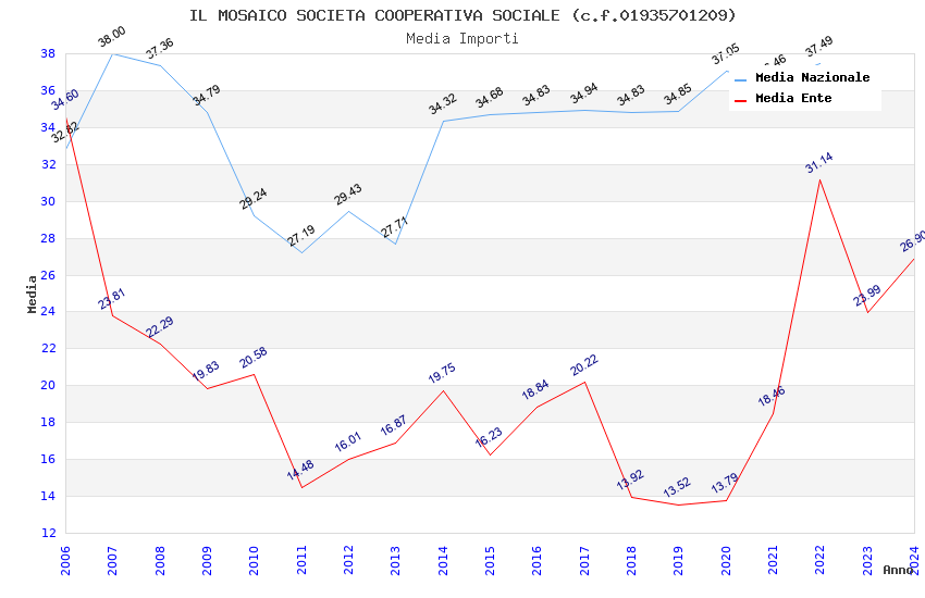 | Anno | Firme | Importi | Media | Naz. | Reg. | Prov. | Comu. |
