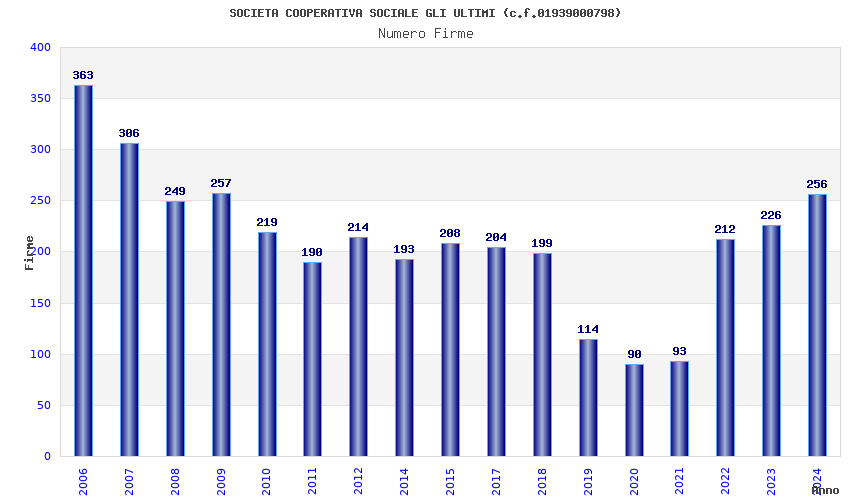 | Anno | Firme | Importi | Media | Naz. | Reg. | Prov. | Comu. |