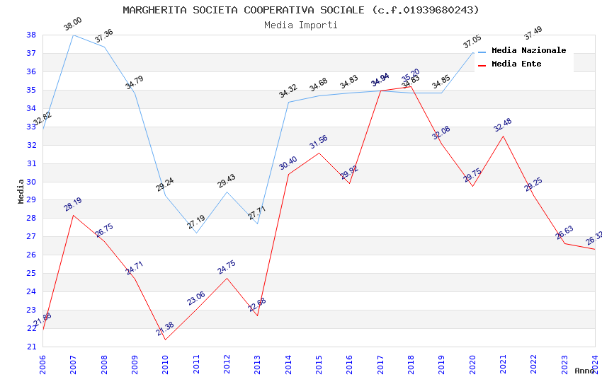 | Anno | Firme | Importi | Media | Naz. | Reg. | Prov. | Comu. |