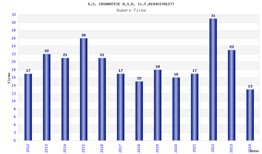 | 2022 | 31 | 1.435,09 | 46,29 | 28.518 | 5.854 | 470 | 2 |