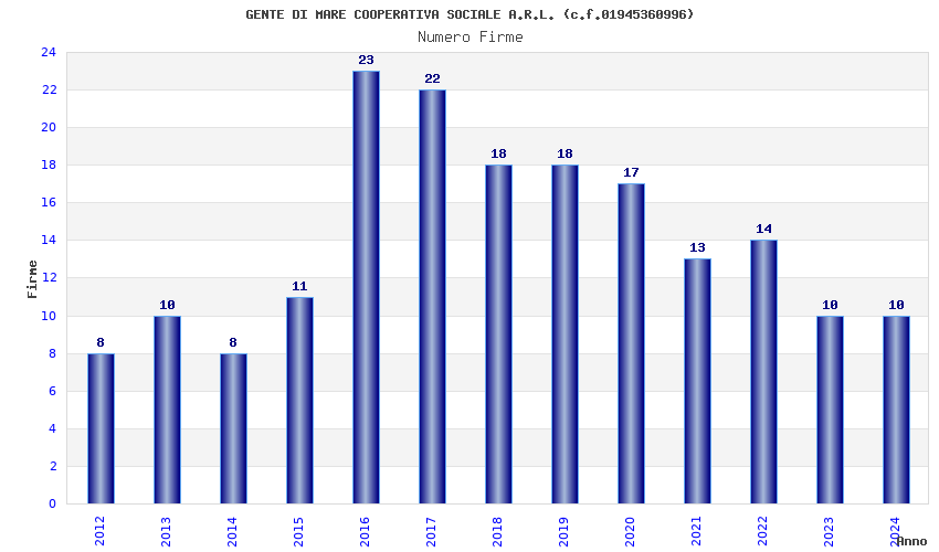 | Anno | Firme | Importi | Media | Naz. | Reg. | Prov. | Comu. |