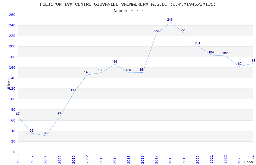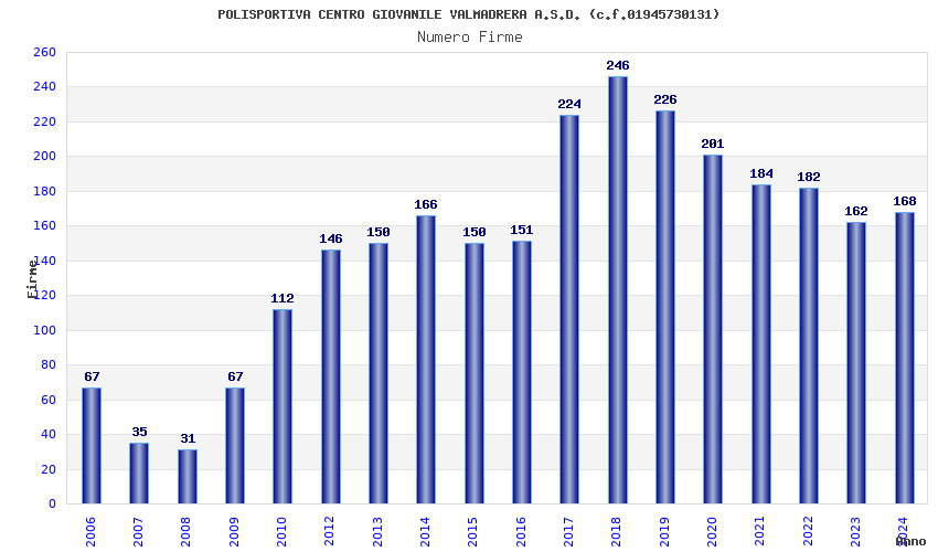 | 2018 | 246 | 8.289,68 | 33,70 | 6.420 | 1.556 | 52 | 2 |