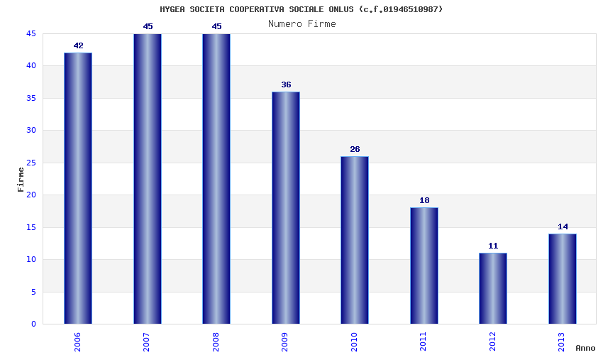| Anno | Firme | Importi | Media | Naz. | Reg. | Prov. | Comu. |