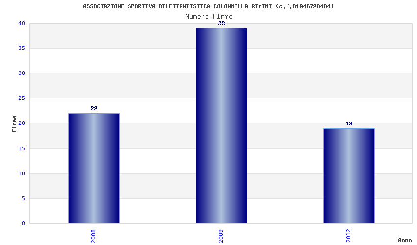 | Anno | Firme | Importi | Media | Naz. | Reg. | Prov. | Comu. |