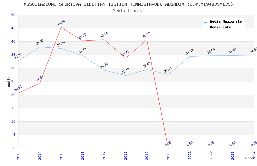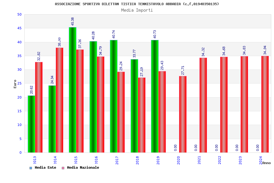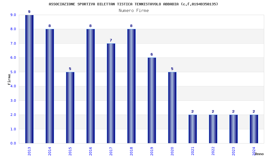 | Anno | Firme | Importi | Media | Naz. | Reg. | Prov. | Comu. |