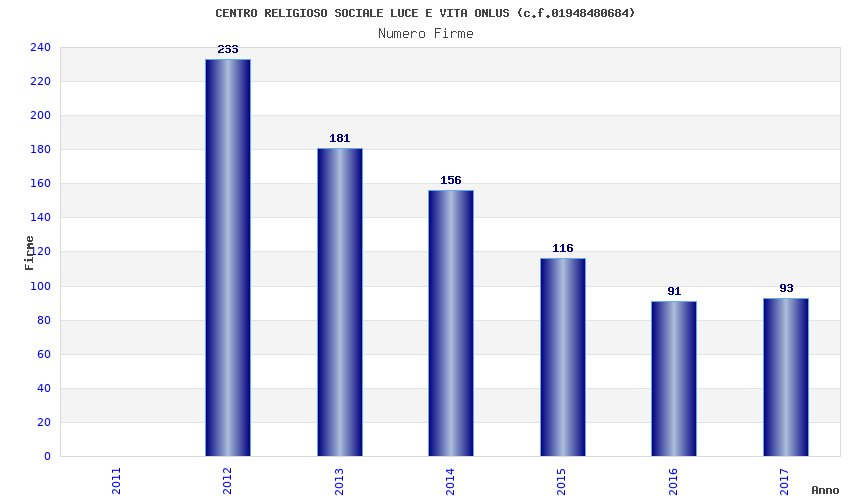 | Anno | Firme | Importi | Media | Naz. | Reg. | Prov. | Comu. |