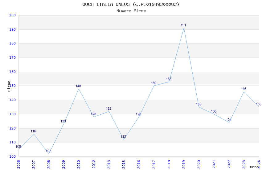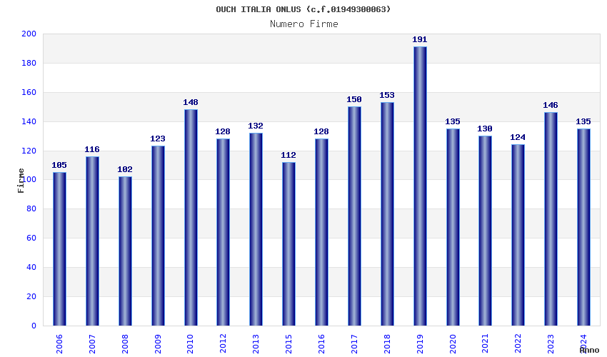 | Anno | Firme | Importi | Media | Naz. | Reg. | Prov. | Comu. |