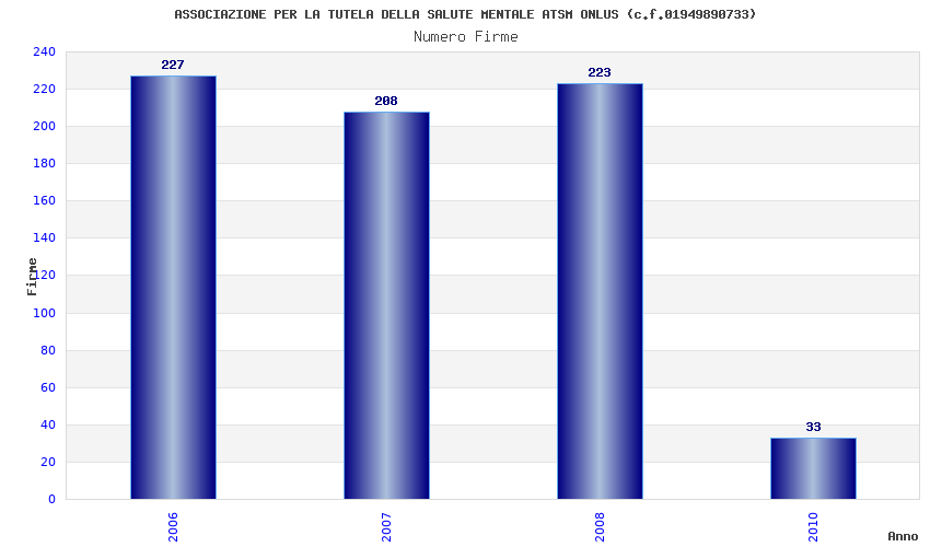 | Anno | Firme | Importi | Media | Naz. | Reg. | Prov. | Comu. |