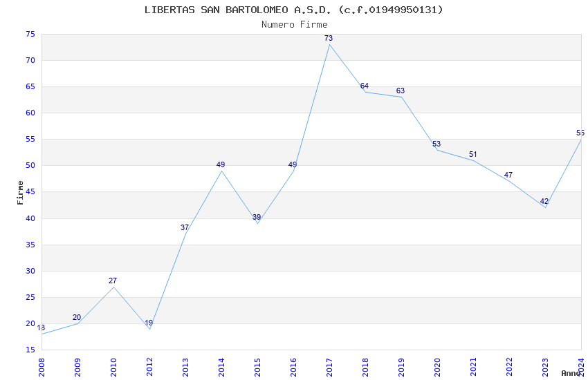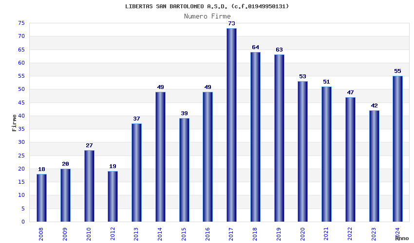 | 2017 | 73 | 3.385,07 | 46,37 | 15.845 | 3.662 | 192 | 48 |