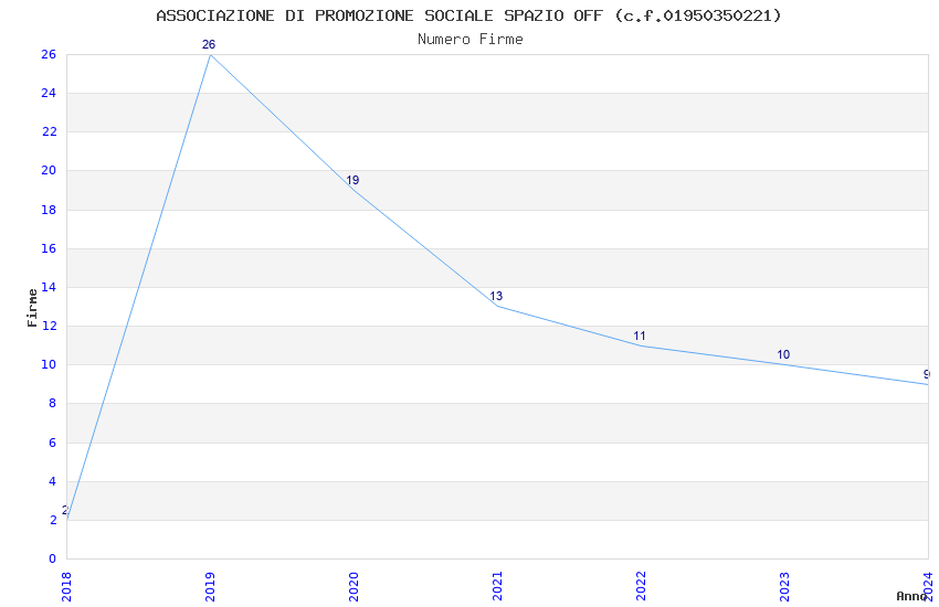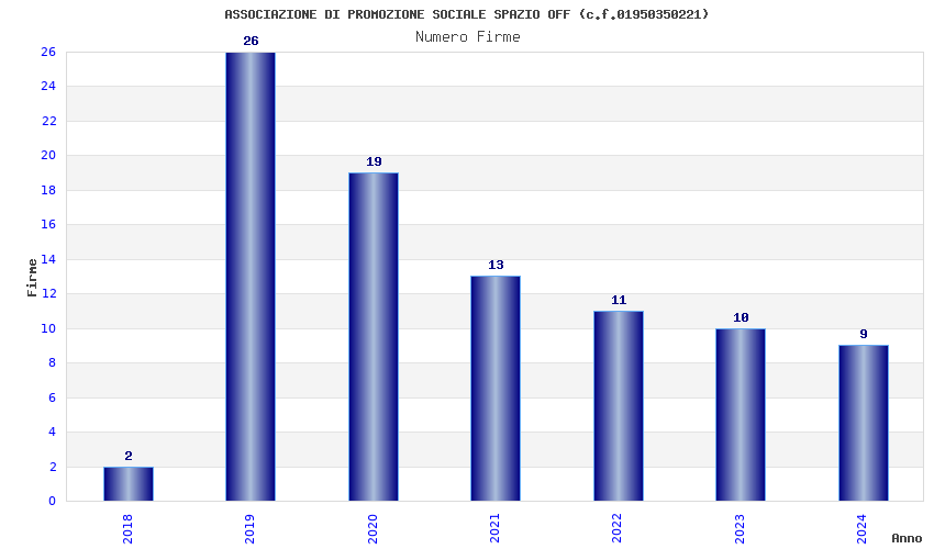 | Anno | Firme | Importi | Media | Naz. | Reg. | Prov. | Comu. |