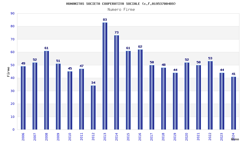 | Anno | Firme | Importi | Media | Naz. | Reg. | Prov. | Comu. |