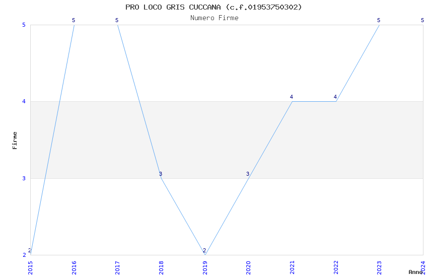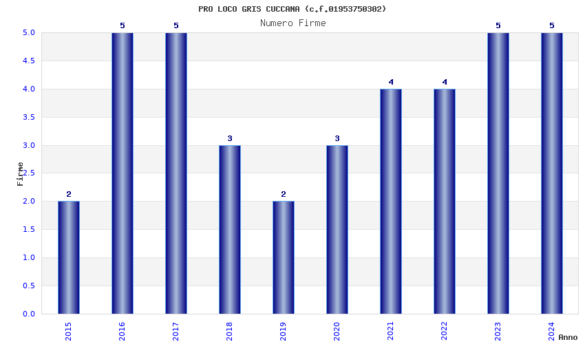 | Anno | Firme | Importi | Media | Naz. | Reg. | Prov. | Comu. |