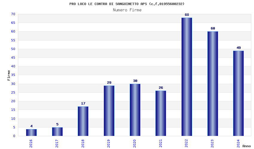 | Anno | Firme | Importi | Media | Naz. | Reg. | Prov. | Comu. |