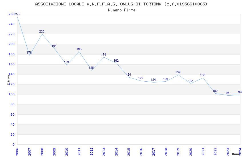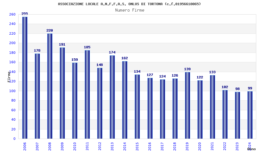 | Anno | Firme | Importi | Media | Naz. | Reg. | Prov. | Comu. |