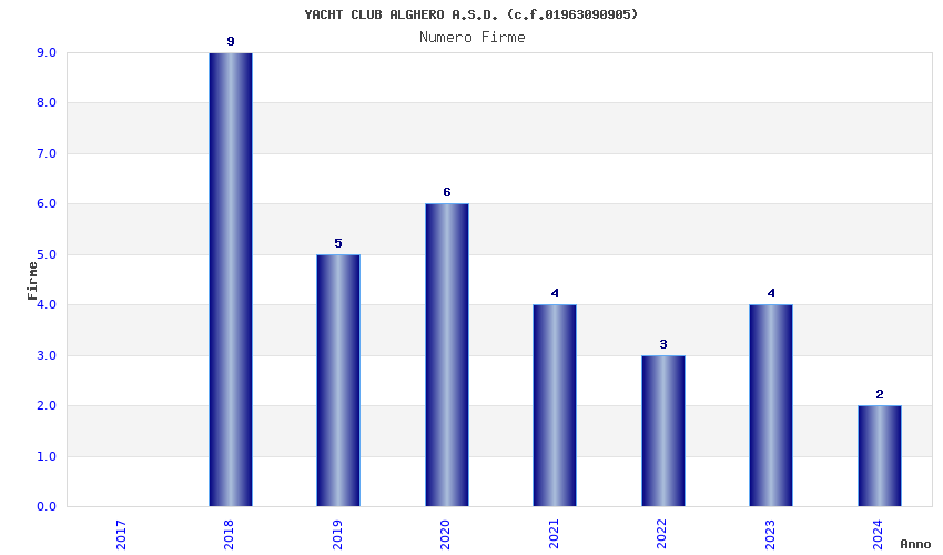| Anno | Firme | Importi | Media | Naz. | Reg. | Prov. | Comu. |
