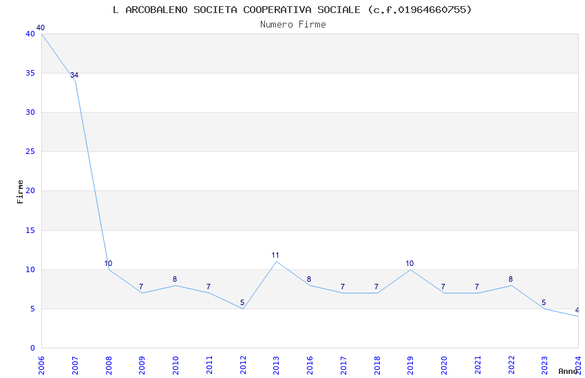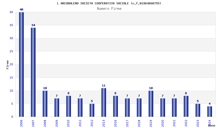 | Anno | Firme | Importi | Media | Naz. | Reg. | Prov. | Comu. |