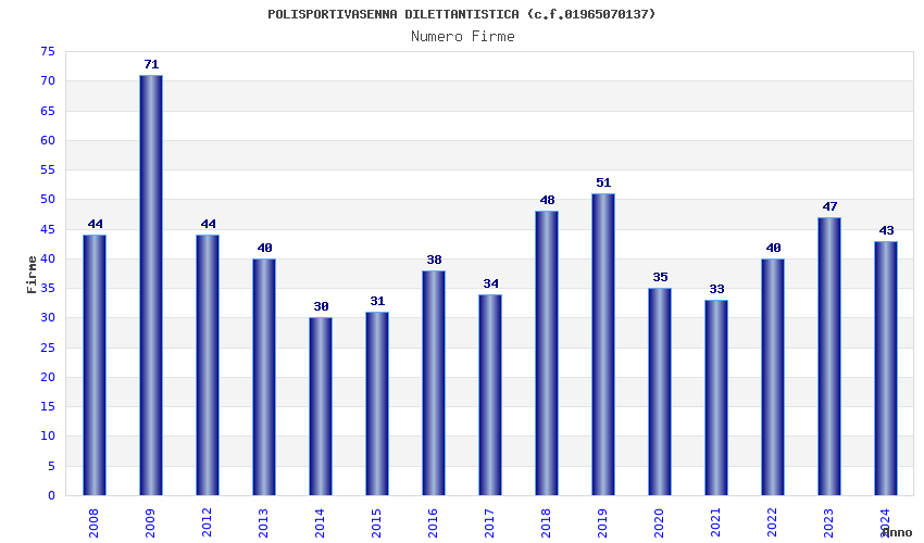 Anno Firme Importi Media Naz. Reg. Prov. Comu.