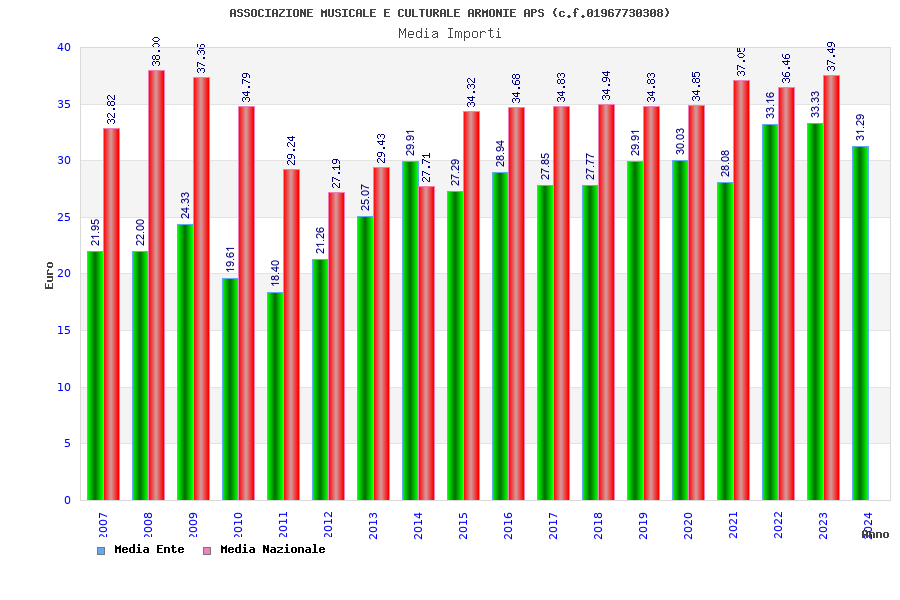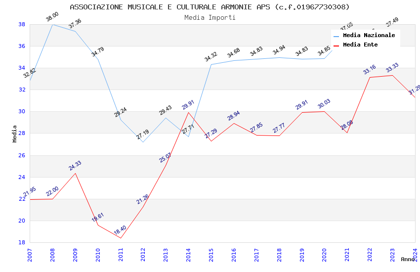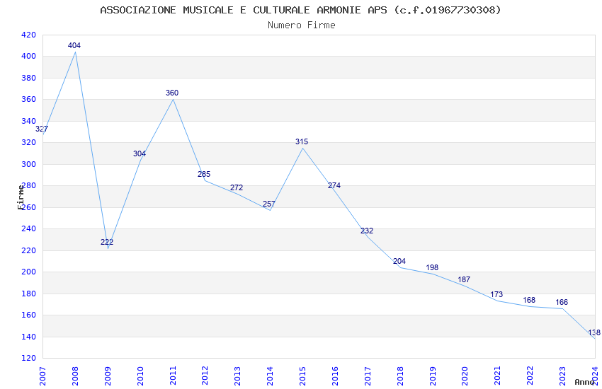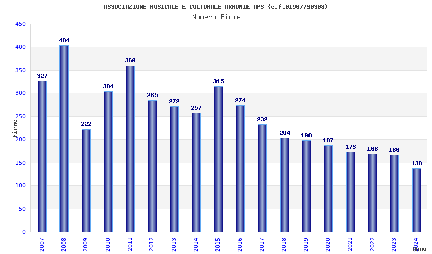 | Anno | Firme | Importi | Media | Naz. | Reg. | Prov. | Comu. |