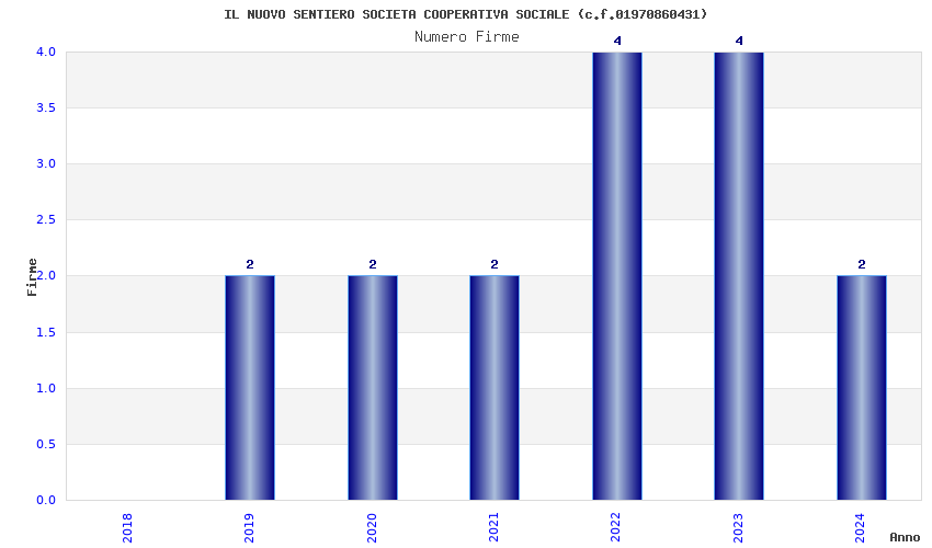 | Anno | Firme | Importi | Media | Naz. | Reg. | Prov. | Comu. |
