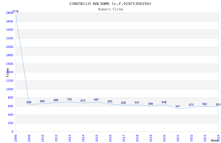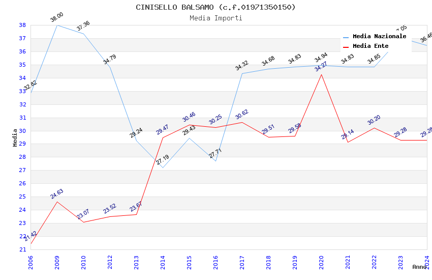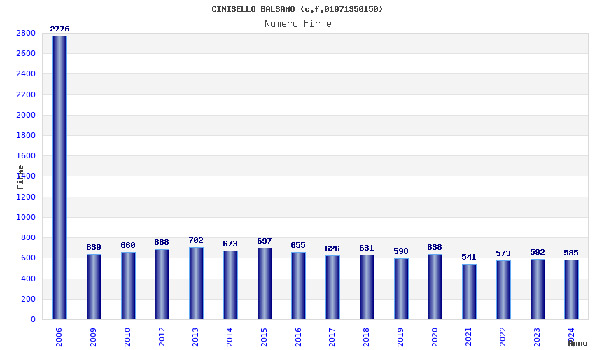 | Anno | Firme | Importi | Media | Naz. | Reg. | Prov. | Comu. |