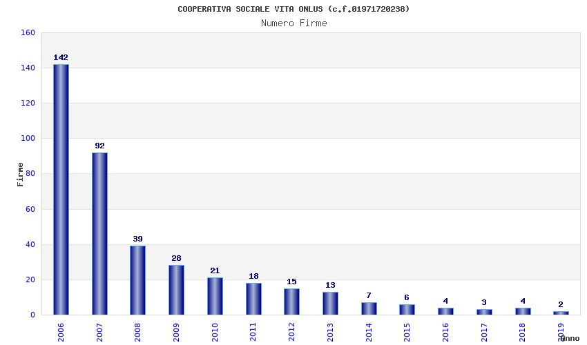 | Anno | Firme | Importi | Media | Naz. | Reg. | Prov. | Comu. |