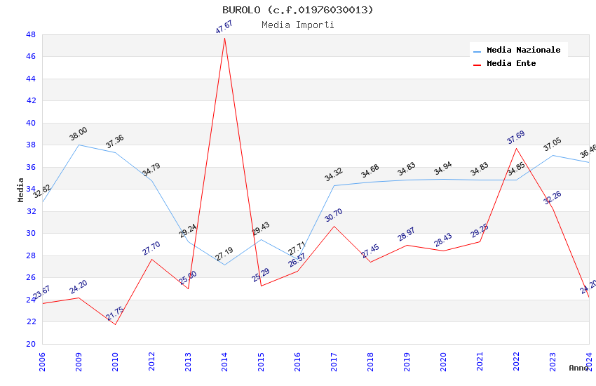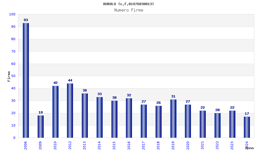 | Anno | Firme | Importi | Media | Naz. | Reg. | Prov. | Comu. |