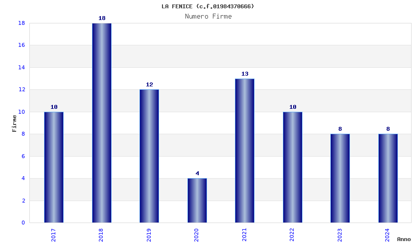 | Anno | Firme | Importi | Media | Naz. | Reg. | Prov. | Comu. |