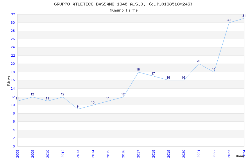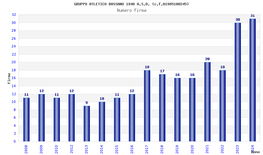 | Anno | Firme | Importi | Media | Naz. | Reg. | Prov. | Comu. |