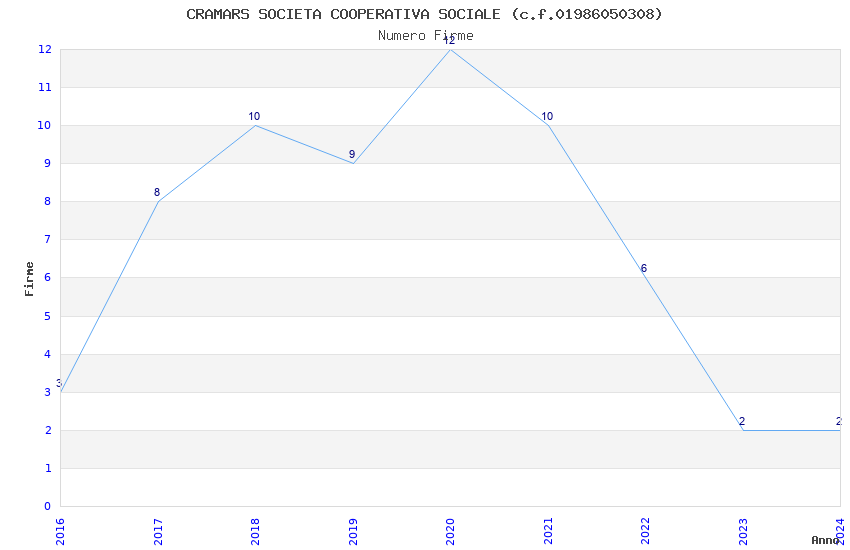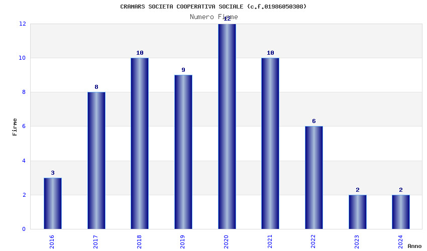 | Anno | Firme | Importi | Media | Naz. | Reg. | Prov. | Comu. |