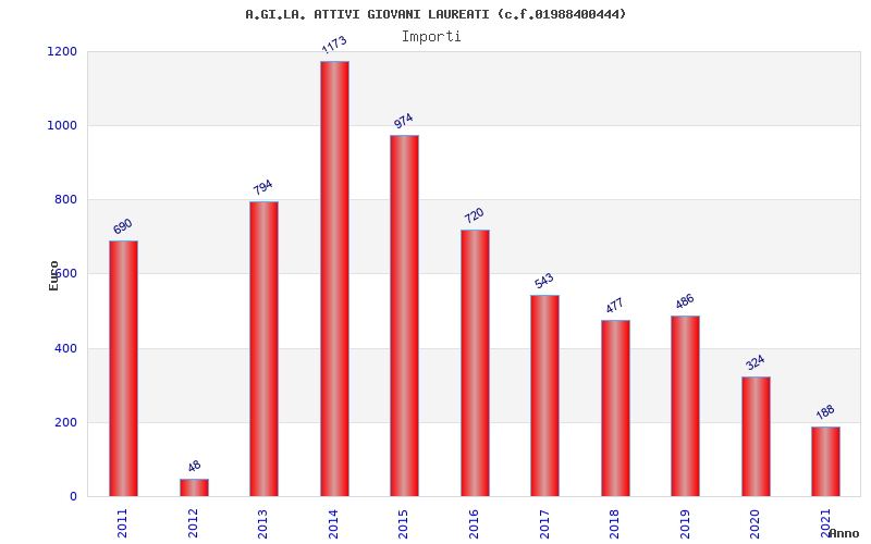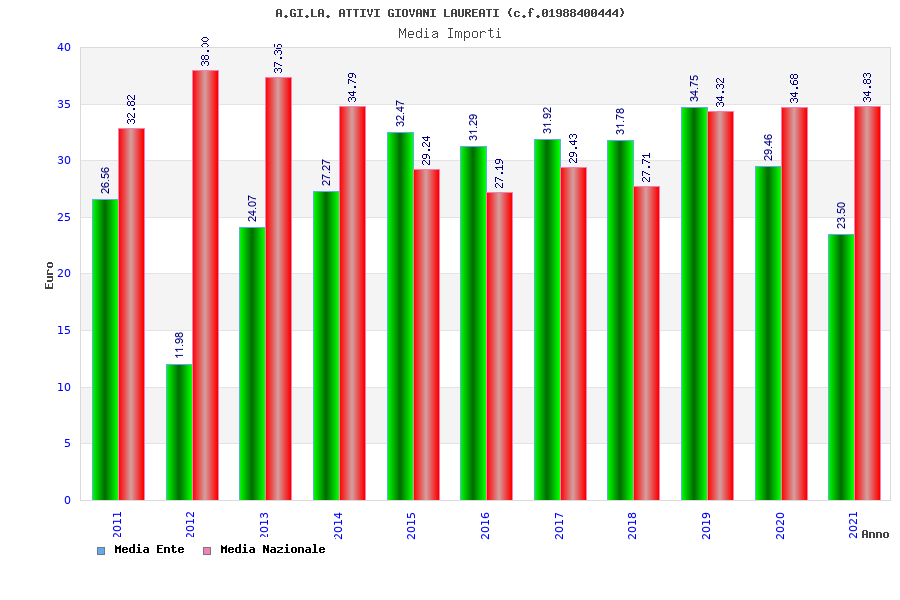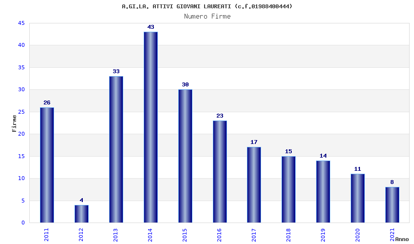 | Anno | Firme | Importi | Media | Naz. | Reg. | Prov. | Comu. |