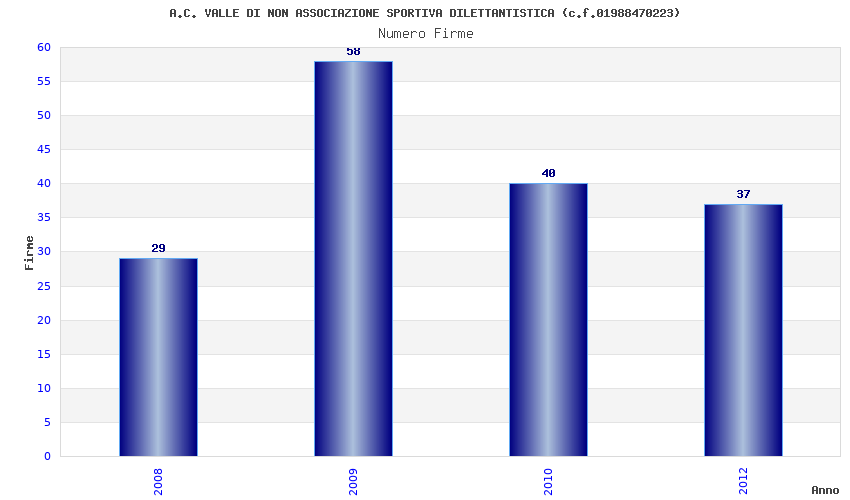 | Anno | Firme | Importi | Media | Naz. | Reg. | Prov. | Comu. |